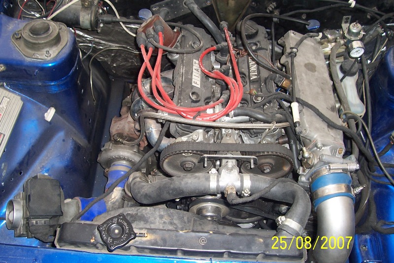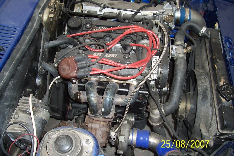 I suspect the engine came from an 8valve Lancia Delta Intergrale. The owner should fit an air filter to the intake if he doesn't want to be changing the turbo often!  Grin