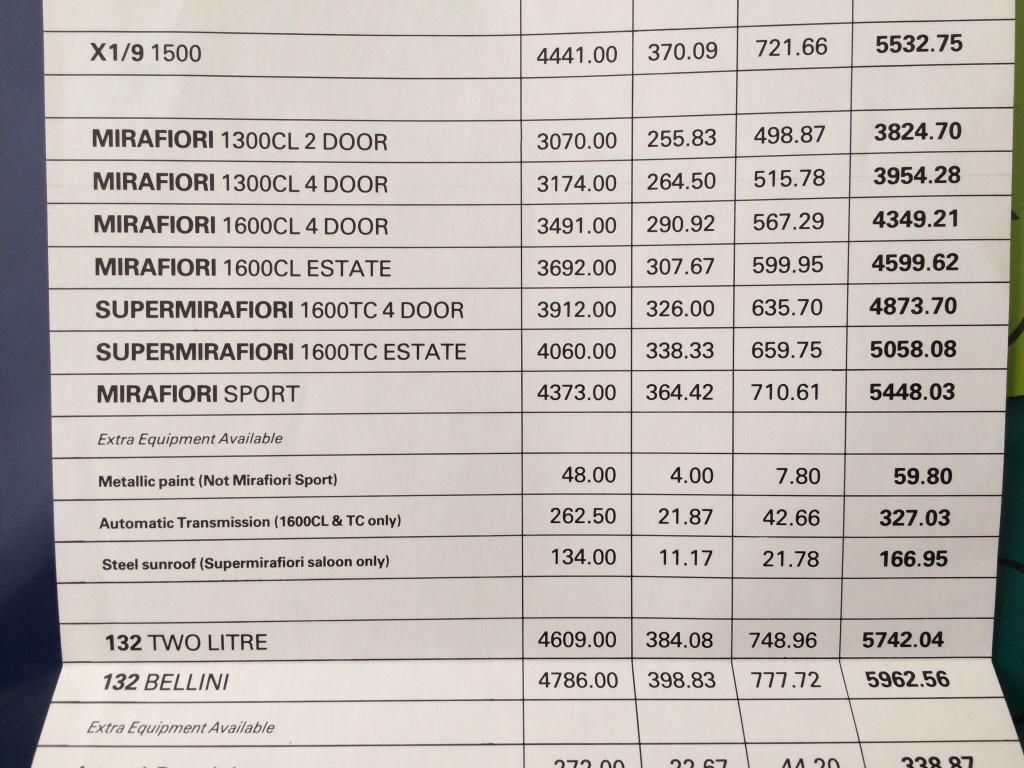 Fiat 131 and derivatives. Information is provided in good faith and no liability can be accepted by any individual for any situation arising from the use of this information. |