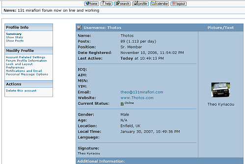 This website and forum is for owners and enthusiasts of the Fiat 131 and as much as we'd like our group to have hundreds and even thousands of members, we have to accept that we'll always be a small group of motoring enthusiasts with a common and very specific interest in the Fiat 131. One thing which I feel does not belong in such a small group with a common interest is anonymity.  I appreciate that a lot of people have their favourite forum 'handles' which they use in a lot of other forums and would also like to use those same usernames here. That's perfectly OK but this forum also gives you the facility to make yourselves known by entering your name as your signature or adding your name as text with your personal photo (avatar).  I would like to ask all forum members to make themselves known by entering their name in either or both of the fields mentioned above. Please click the 'profile' button when you are logged into the forum and then select 'Forum Profile Information' under the 'Modify Profile' menu and enter your name in the Signature field and/or the Personal text field.